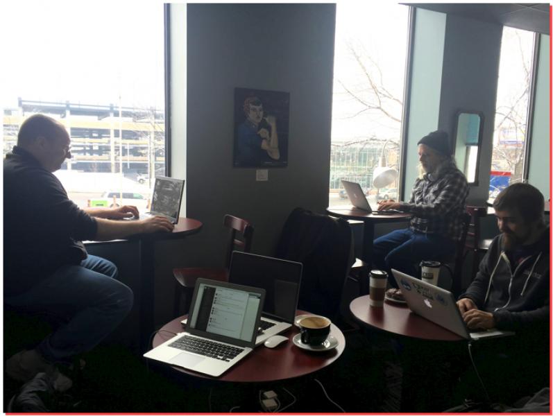 Triplo is just over two years old and throughout our our formative years, we’ve never had any kind of formal office or space that we could rely on. We’ve worked/met in the meeting room of David Needham’s apartment building, co-worked in a local tap room (during their off-hours), met in libraries, done some work while riding on the light rail, met in Wilbur’s living room, and frequently made ourselves at home on the second floor of the Goat Coffeehouse (East Side of Saint Paul). While this kind of remote work environment offers flexibility, freedom, and low overhead, it also has it’s limitations.